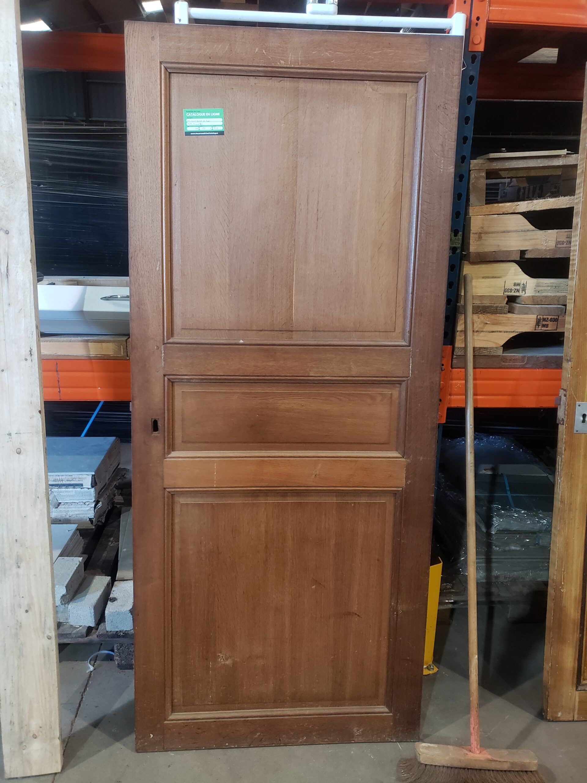 Description : Ancienne porte en bois. Dimensions : 85 cm × 197,5 cm. Disponible à la matériauthèque de Tournai.
