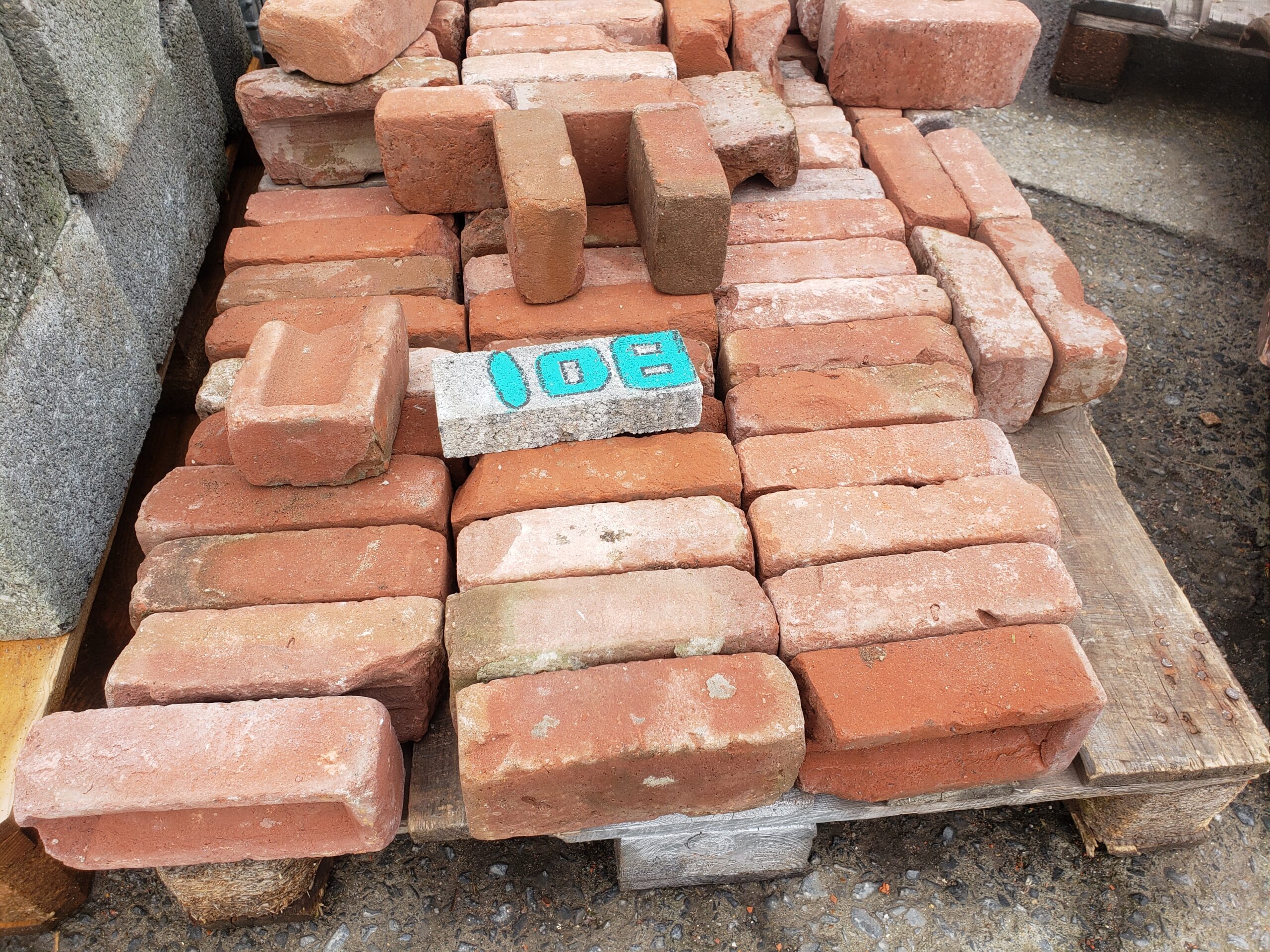 Description : Anciennes briques. Dimensions : 21 cm × 9,5 cm × 6,5 cm. Disponible à la matériauthèque de Tournai.