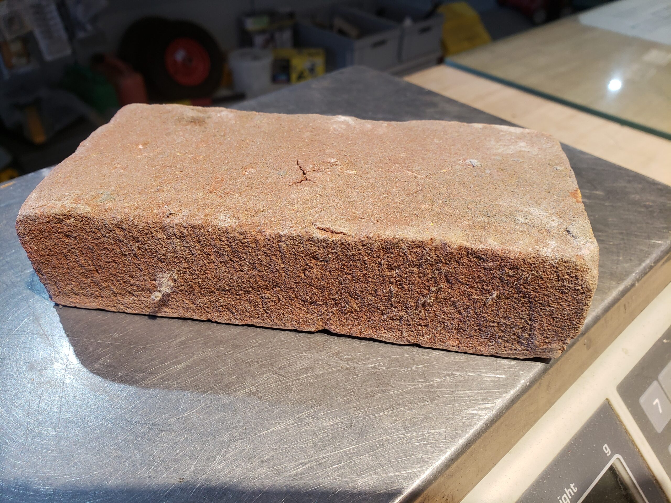 Description : Briques rouge. Dimensions : 16 cm × 7,5 cm × 3,5 cm. Disponible à la matériauthèque de Tournai.