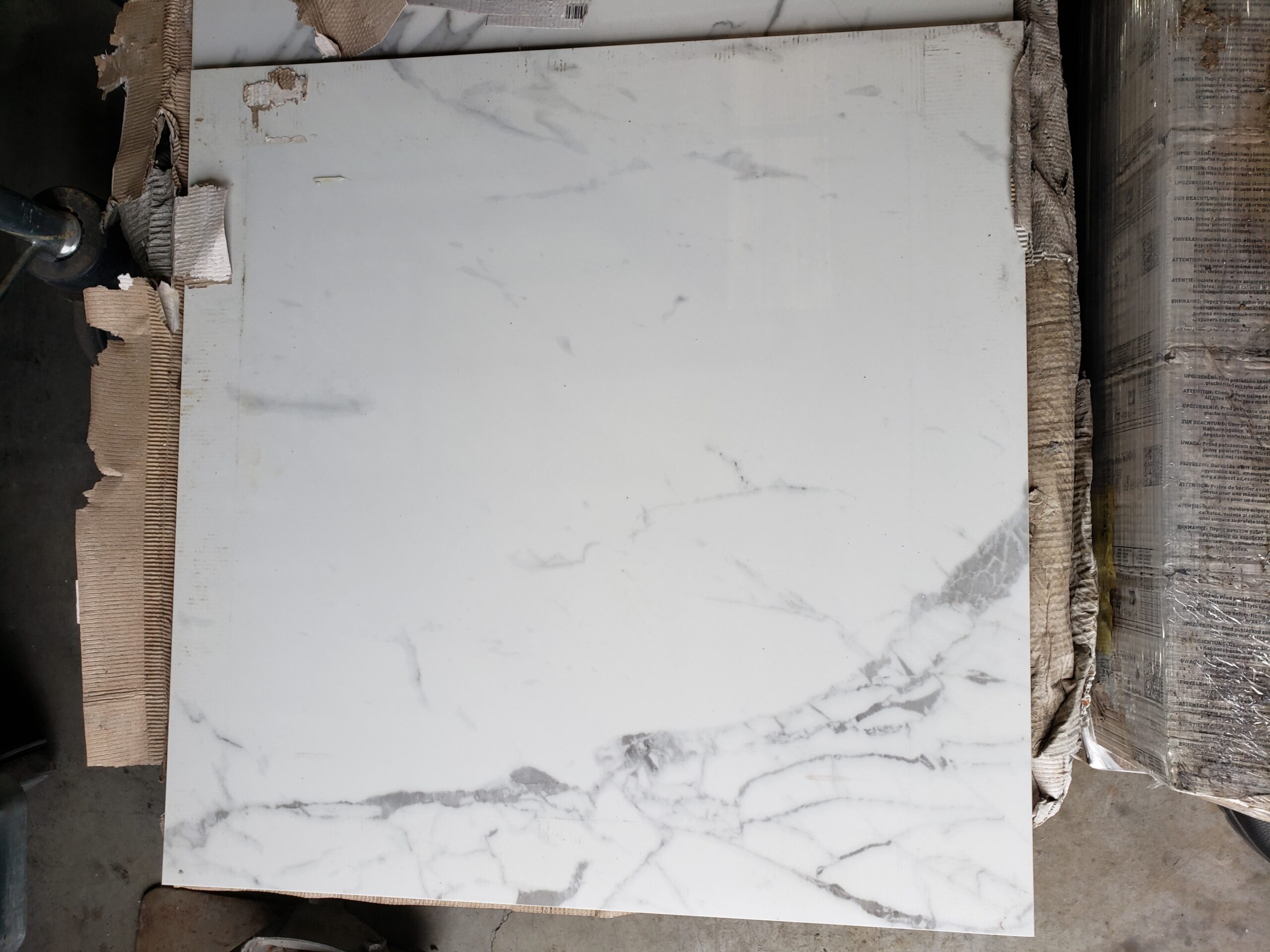 Description : Carreaux Caesar Statuario. Dimensions : 75 cm × 75 cm. 6,75 m2 disponible(s) - prix au m2. Disponible à la matériauthèque de Tournai.