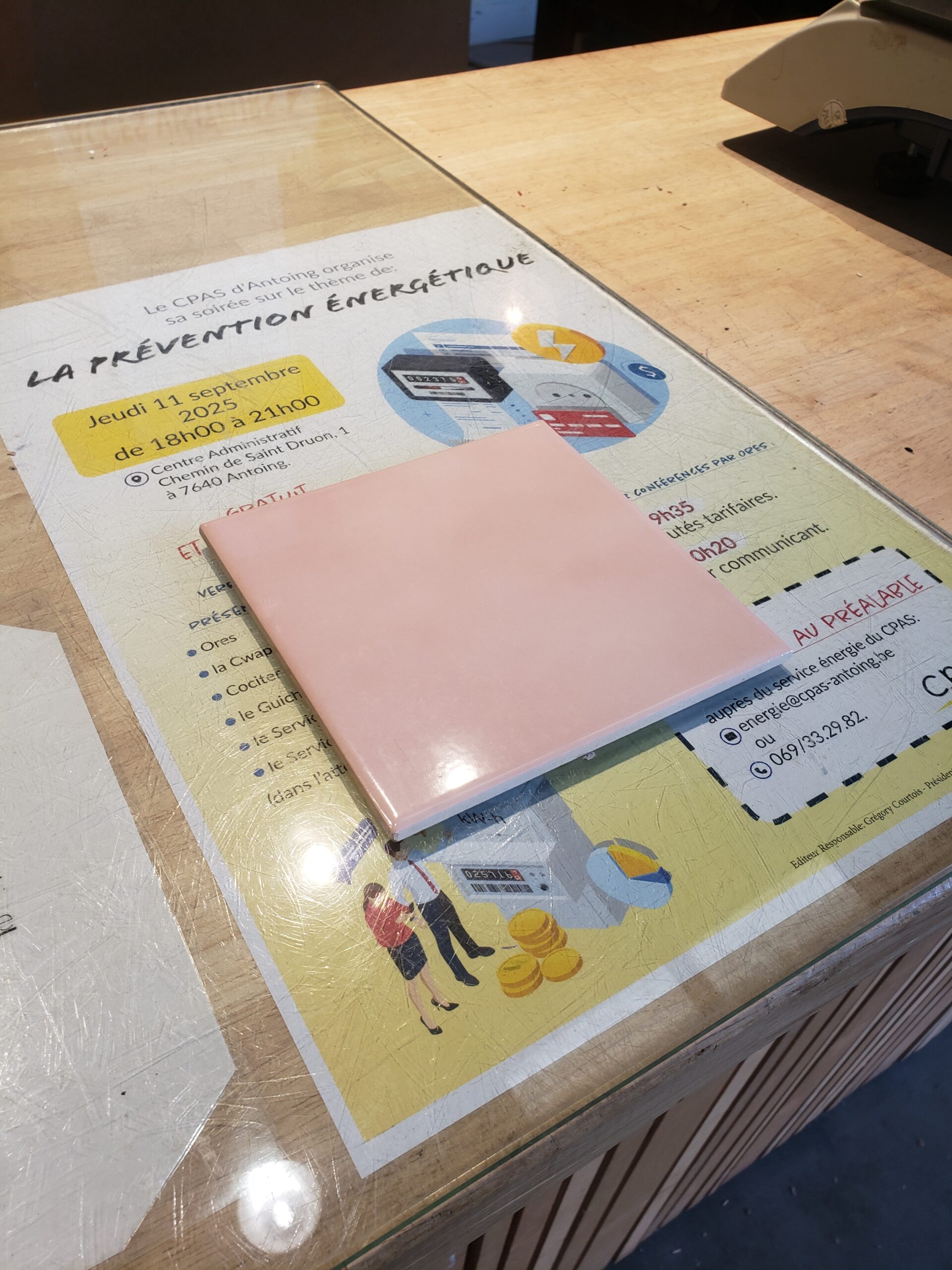 Description : Carreaux Ceramico Estaco Rose. Dimensions : 15 cm × 15 cm. 4,64 m2 disponible(s) - prix au m2. Disponible à la matériauthèque de Tournai.