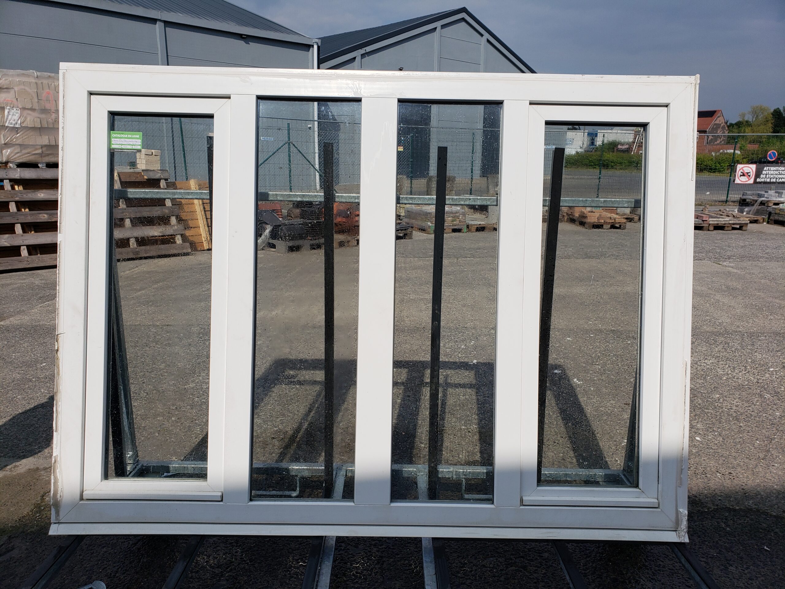 Description : Châssis en PVC double vitrage double ovrant osc. Dimensions : 199 cm × 145,5 cm. oscillo battant. Disponible à la matériauthèque de Tournai.