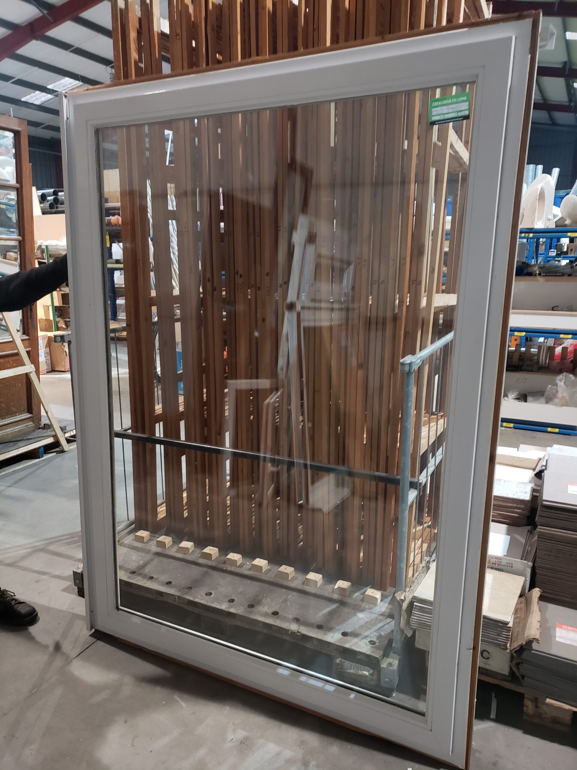 Description : Châssis en PVC fixe. Dimensions : 205 cm × 150,5 cm. Disponible à la matériauthèque de Tournai.