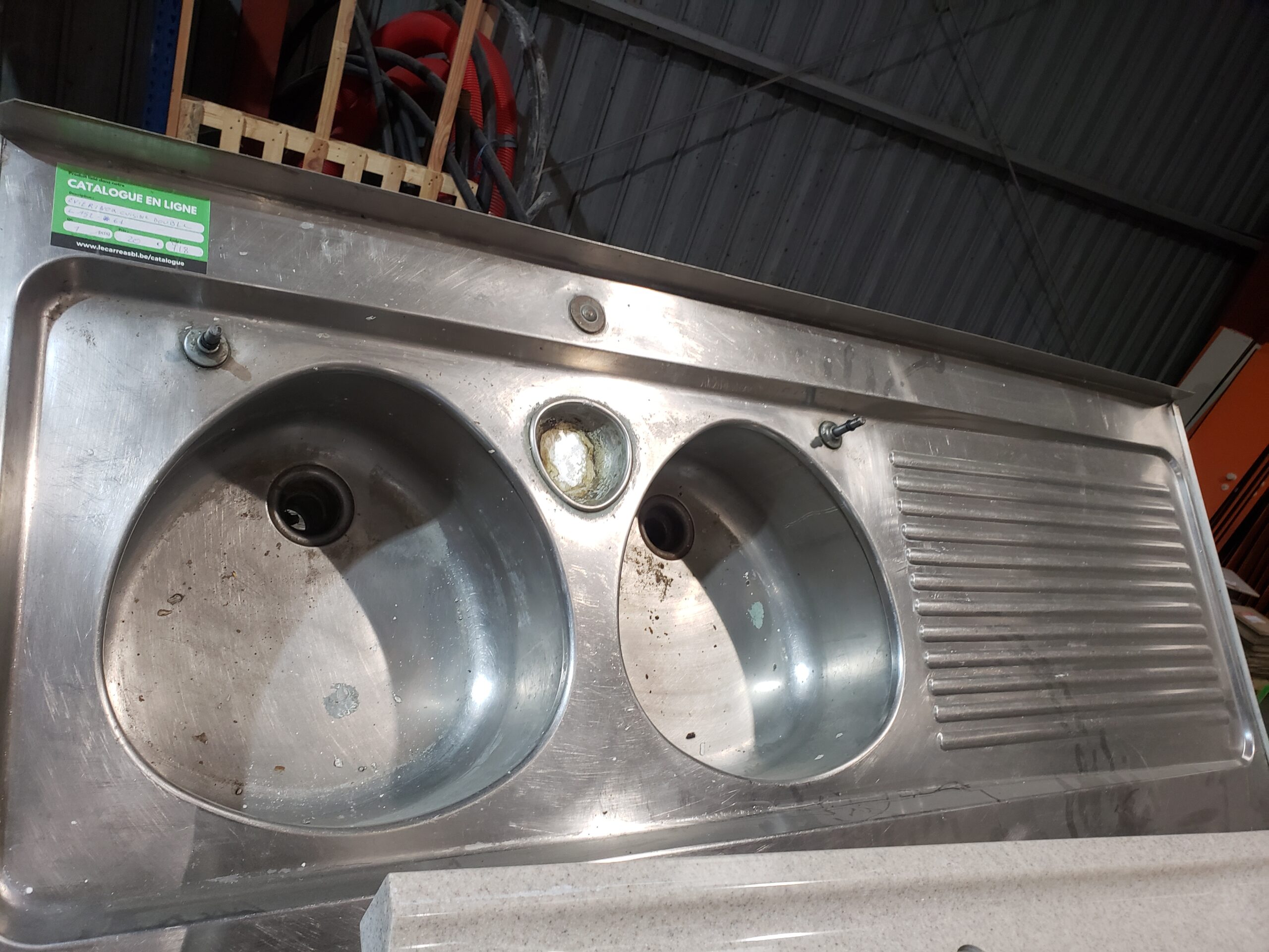 Description : Double évier en inox. Disponible à la matériauthèque de Tournai.