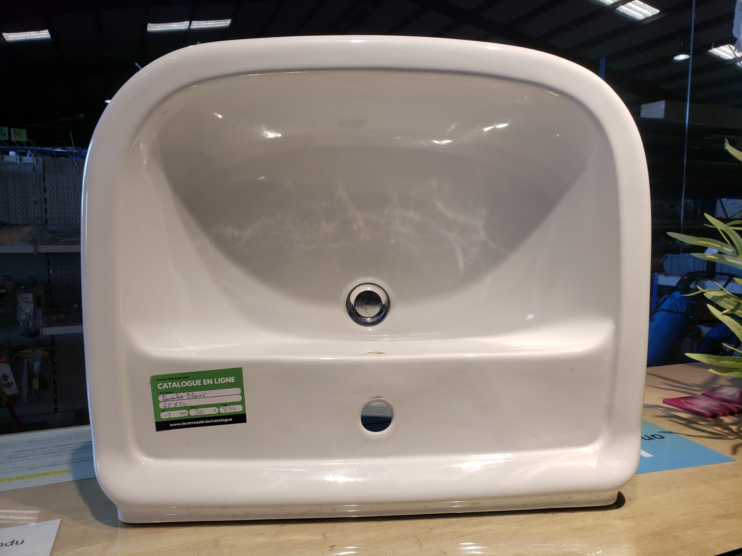 Description : Lavabo. Dimensions : 65 cm × 54 cm. Disponible à la matériauthèque de Tournai.