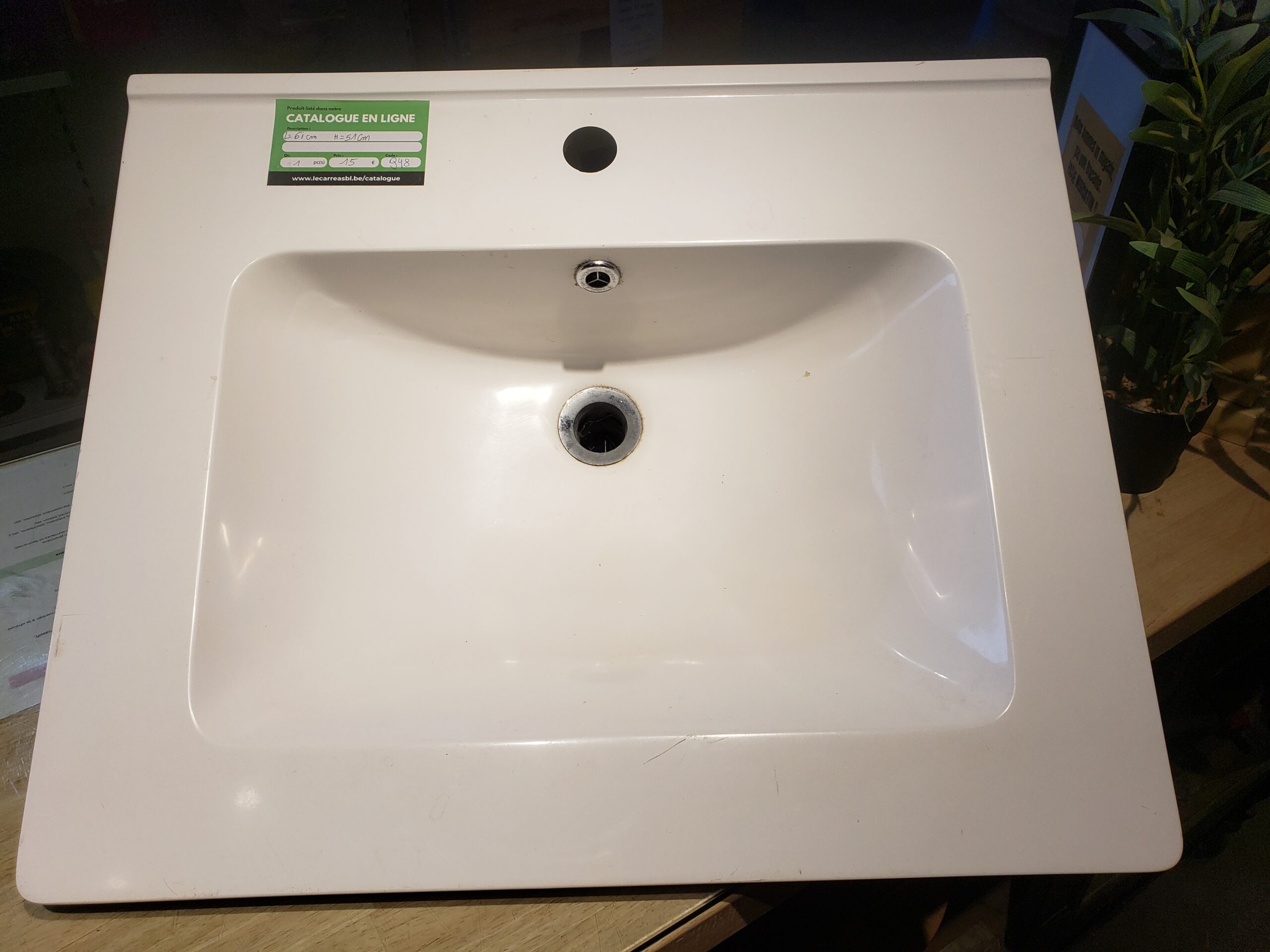Description : Lavabo. Dimensions : 61 cm × 51 cm. Disponible à la matériauthèque de Tournai.