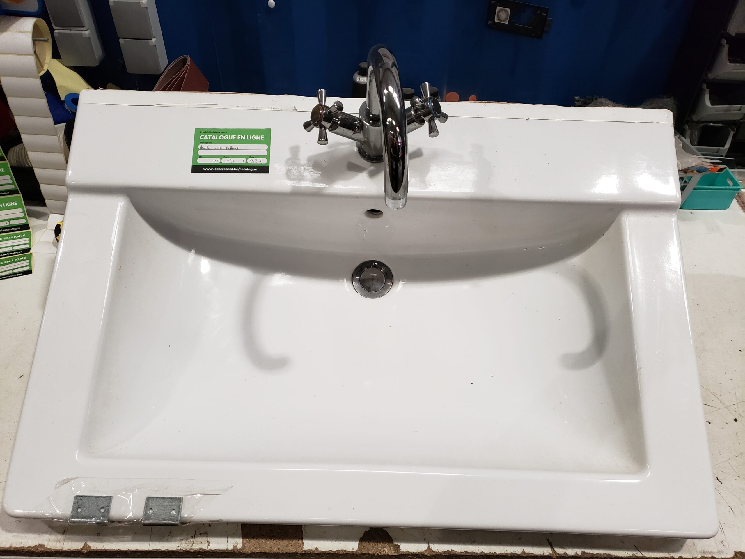 Description : Lavabo avec robinet. Disponible à la matériauthèque de Tournai.