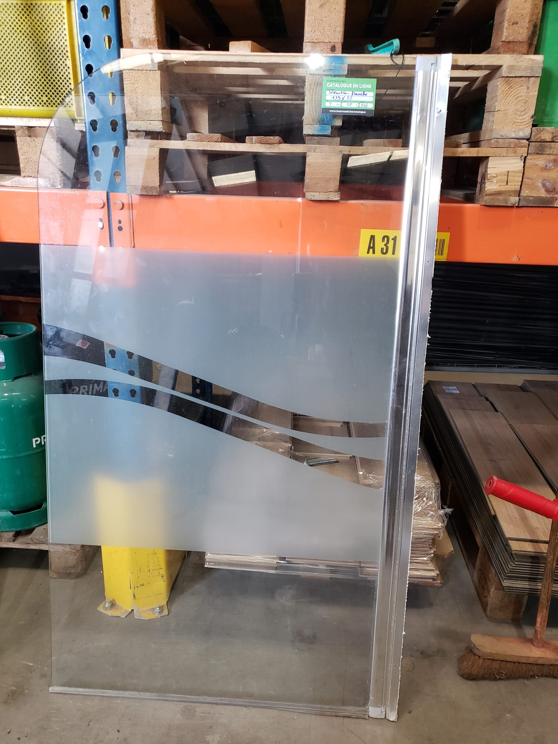 Description : Panneau de douche. Dimensions : 80 cm × 135 cm. Disponible à la matériauthèque de Tournai.
