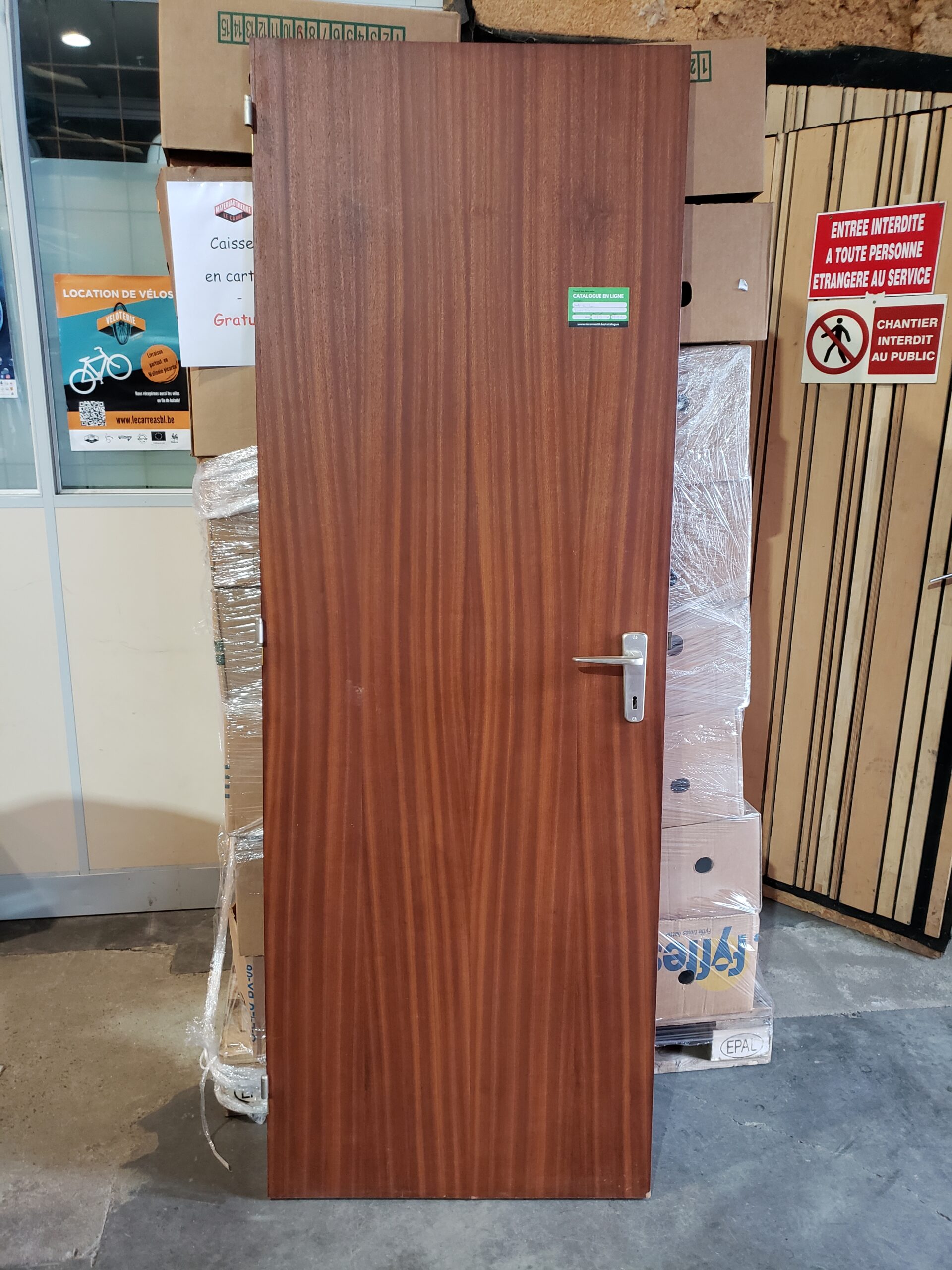 Description : Porte en bois. Dimensions : 71 cm × 201 cm. Disponible à la matériauthèque de Tournai.