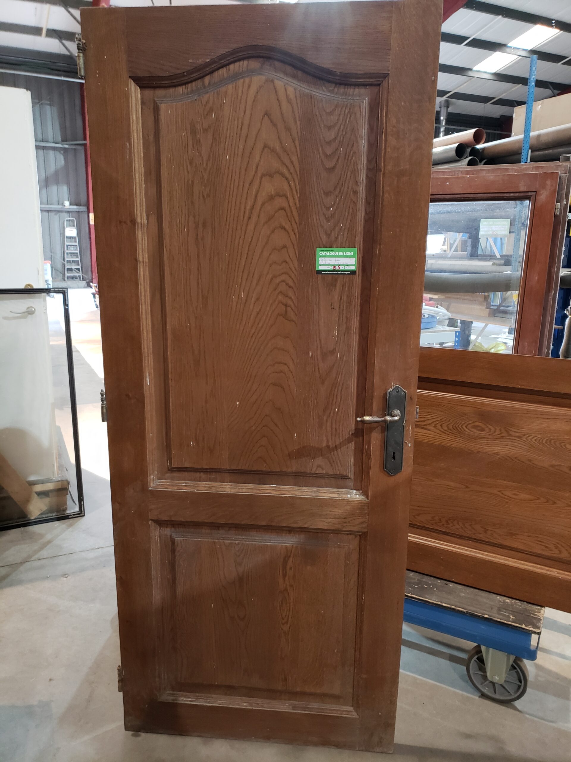 Description : Porte en chêne. Dimensions : 83,5 cm × 202 cm. Disponible à la matériauthèque de Tournai.
